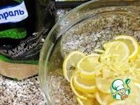 Лимон моем, срезаем кончики и делим пополам. Половинки нарезаем тонкими ломтиками. В процессе косточки удаляем и выбрасываем.