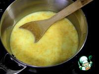 В кастрюлю наливаем молоко, добавляем сливочное масло, цедру апельсина, ваниль и сахар и нагреваем до полного растворения, но не доводим до кипения. Снимаем с огня.