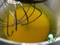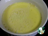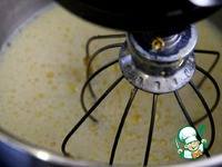 Продолжая взбивать, медленно вводим горячее молоко в яйца