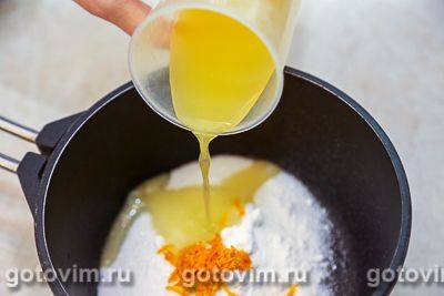 Варить апельсиновый крем, постоянно помешивая, до загустения. На это уйдет примерно 20 минут.
