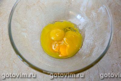 Яйца разделить на белки и желтки. Белки убрать в холодильник и использовать для других рецептов. В отдельной миске венчиком растереть яичные желтки.