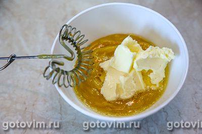 Добавить в апельсиновый крем мягкое сливочное масло и размешать.
