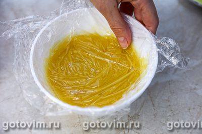 Накрыть апельсиновый курд пищевой пленкой, чтобы она вплотную прилегала к курду, и убрать в холодильник до полного остывания.