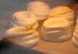 Отправляю их в духовку, разогретую до 100° C на 55-60 минут. Мне нужно, чтобы они покрылись корочкой сверху, снизу и по бокам. Из указанного количества ингредиентов выходит 7 пирожных.