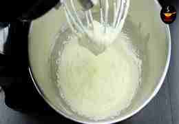 добавляю чайную ложку лимонного сока. И взбиваю всё достаточно долго, где-то минут 10. Масса должна стать пышной и глянцевой.