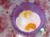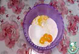 Творог перетираем через сито. Добавляем к творогу сметану, растопленное сливочное масло, сахар, желтки, ванильный сахар и щепотку соли.
