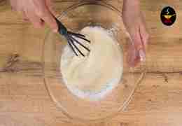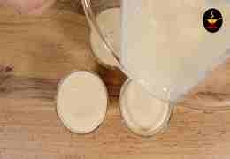 В отдельной глубокой миске смешиваем 0,5 л ряженки с сахарной пудрой при помощи венчика. Для нежного десерта на ряженке я советую использовать именно сахарную пудру,