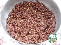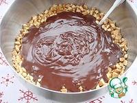 Перемешать и растопить на среднем огне, постоянно помешивая. В миске соединить печенье и орехи, залить получившейся шоколадной смесью.