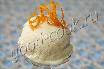 Потрясающе вкусное мороженое. Сладкое, но с лёгкой кислинкой. Аромат насыщенный, апельсиновый. Цвет - светло-оранжевый. Готовить это мороженое совсем не сложно. Если нужно, чтобы цвет получился более насыщенным, то при варке помадки в массу нужно добавить маленькую щепотку куркумы.