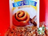 Начинаем с посыпки: смешиваем оба вида муки, 80 г сахара, соль, половину корицы, измельченные орехи, овсяные хлопья.