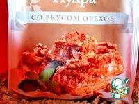 Я добавила сахарную пудру со вкусом орехов, затем положила сливочное масло и руками перетерла посыпку в крупную ароматную крошку.