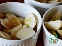 Форму (если готовите один большой пирог) или формочки для порционных криспов смазываем сливочным маслом. Кладем на дно яблоки - почти до верха.