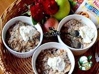 Сверху равномерно насыпаем штрейзель. Ставим формочки в разогретую до 200 гр. духовку примерно на 15 минут. Я включила по их истечении