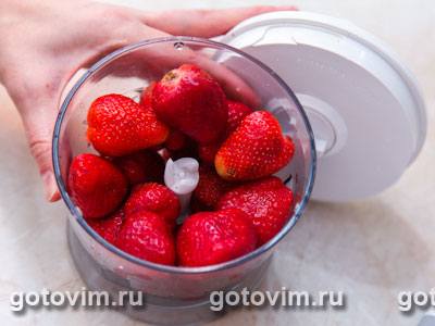 У клубники удалить чашелистики, ягоды положить в блендер и пюрировать, добавив 1-2 ч.л. сахара.