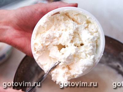 Маскарпоне размять вилкой и смешать с желтковым кремом. Взбить миксером (на небольшой скорости).
