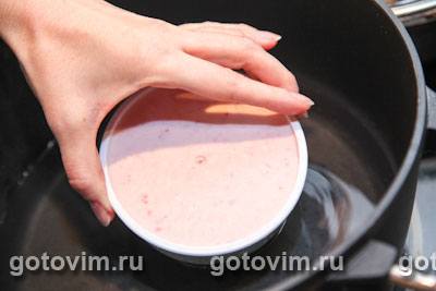 Растопить желатин на водяной бане. Смешать растопленный желатин с пюрированной клубникой.