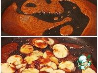 помешивая, варить на среднем огне до образования карамели. Половину бананов выложить в карамель, аккуратно (!) влить коньяк и готовить еще пару минут,