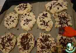 Вынуть из духовки и еще горячими посыпать шоколадной крошкой. Мой шоколад, ну, никак не хотел растекаться, поэтому я его размазала