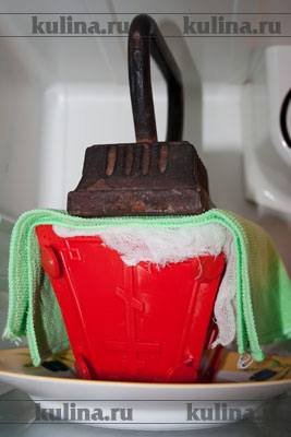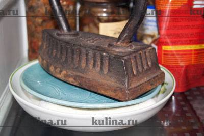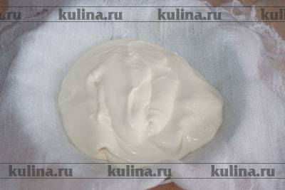 Положить под гнет или подвесить на 4-5 ч, чтобы стекла сыворотка.