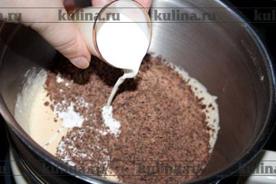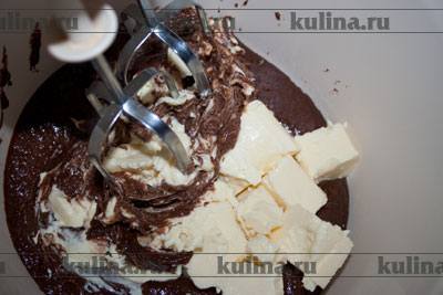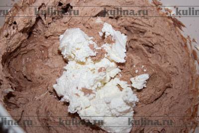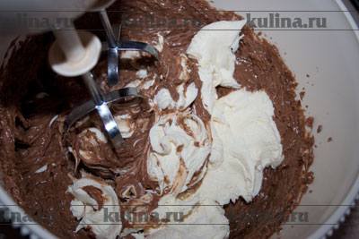 Соединить с остывшей яично-шоколадной массой, взбить.