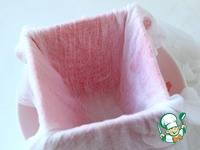 Форму установите в глубокую миску. Марлю ошпарьте кипятком, отожмите, хорошенько отряхните и застелите ею форму для пасхи.