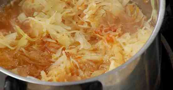 чтобы удалить лишний жир, и отправляем в кастрюлю с капустой. Добавляем немного воды.