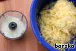 Картофель натереть на крупной (!) тёрке, а лук смолоть в блендере.