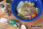 Добавить в картофель лук, бекон, специи (соль, перец, майоран, молотый тмин или кумин) и яйцо. Хорошенько перемешать. После этого я сцедила выделившуюся