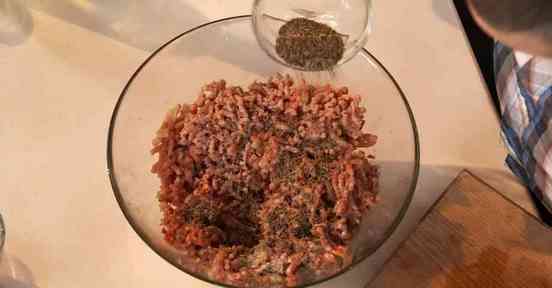 через мясорубку говядину, баранину, лук, мяту и перец чили. Добавляем в фарш зиру и соль. Перемешиваем. Утрамбовываем. Даем настояться.