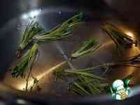 На дно кастрюли или казана, в котором будете готовить, выложить стебли кинзы.