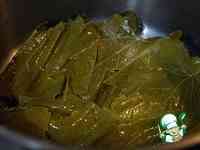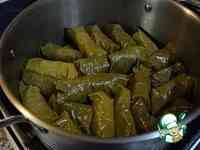 Сверху накрыть оставшимися листьями. Влить сухое вино – так, чтобы оно почти покрывало долму.