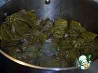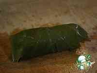 Листья побольше расправлять на столе или доске, выкладывать начинку у самого основания.