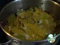 Виноградные листья вынуть из банки, разделить. Самыми маленькими выстелить дно кастрюли.