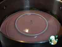 Сверху уложить тарелку, чтобы рулетики не раскрылись.