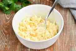 Хорошо перемешиваем. Используем именно майонез, сметана не подойдет, так как при запекании из нее будет выделяться много жидкости.