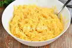 Хорошо перемешиваем. Для приготовления лучше брать немолодой картофель, в нем меньше жидкости.