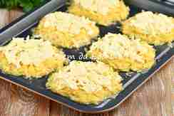 Шуба из сыра и майонеза расплавится, хорошо зарумянится и полностью покроет драники. За счет этой шубы драники в духовке не