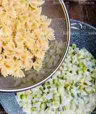 Попробуйте макароны фарфале с кабачками, зеленым горошком и фетой, это взрыв свежести и нежности в каждой вилке! Сочные кабачки, слегка обжаренные, создают основу блюда, а сладкий зеленый горошек добавляет ему яркости и легкости. Макароны-бантики, идеально держащие соус, соединяют все ингредиенты в единую композицию, а фета придают блюду неповторимый сливочно-соленый акцент. Этот рецепт настоящая находка для любителей средиземноморской кухни.