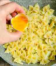 Влить желток.