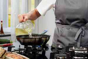 Хорошо разогрейте сковороду с растительным маслом. Обжарьте оставшийся лук с чесноком до золотистого цвета,