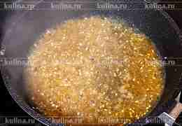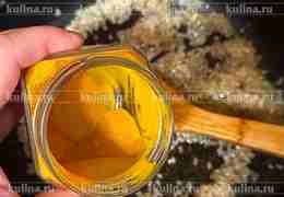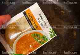 В другую сковороду налить 2 ст. л. растительного масла, всыпать карри, перемешать.