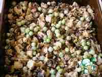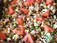 Сверху разложите зеленый горошек.