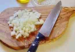 Добавляем лук в сковороду и тушим все вместе еще 2-3 минуты, пока лук не станет прозрачным.