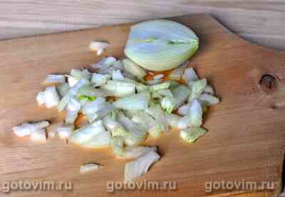 Сначала приготовим грибную начинку для зраз. Мелко шинкуем лук.