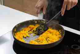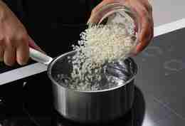 Рис промыть и отварить до полуготовности 5–7 минут.