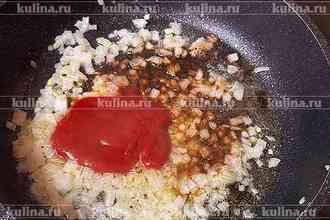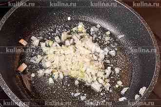 Репчатый лук нарезать мелким кубиком, выложить в сковороду, слегка обжарить.