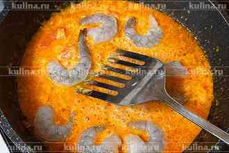 Приправить соус сладкой паприкой, варить до готовности креветок, примерно 2-3 минуты.