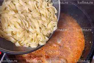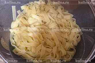 Вскипятить воду, выложить макароны и варить до состояния аль денте.