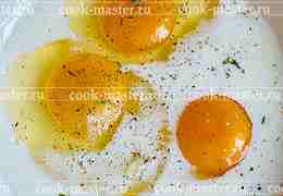 Яйца разбить в миску, влить молоко, посолить и поперчить по вкусу, перемешать.