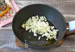 Нарежьте мелко лук и выложите в разогретую сковороду с растительным маслом.